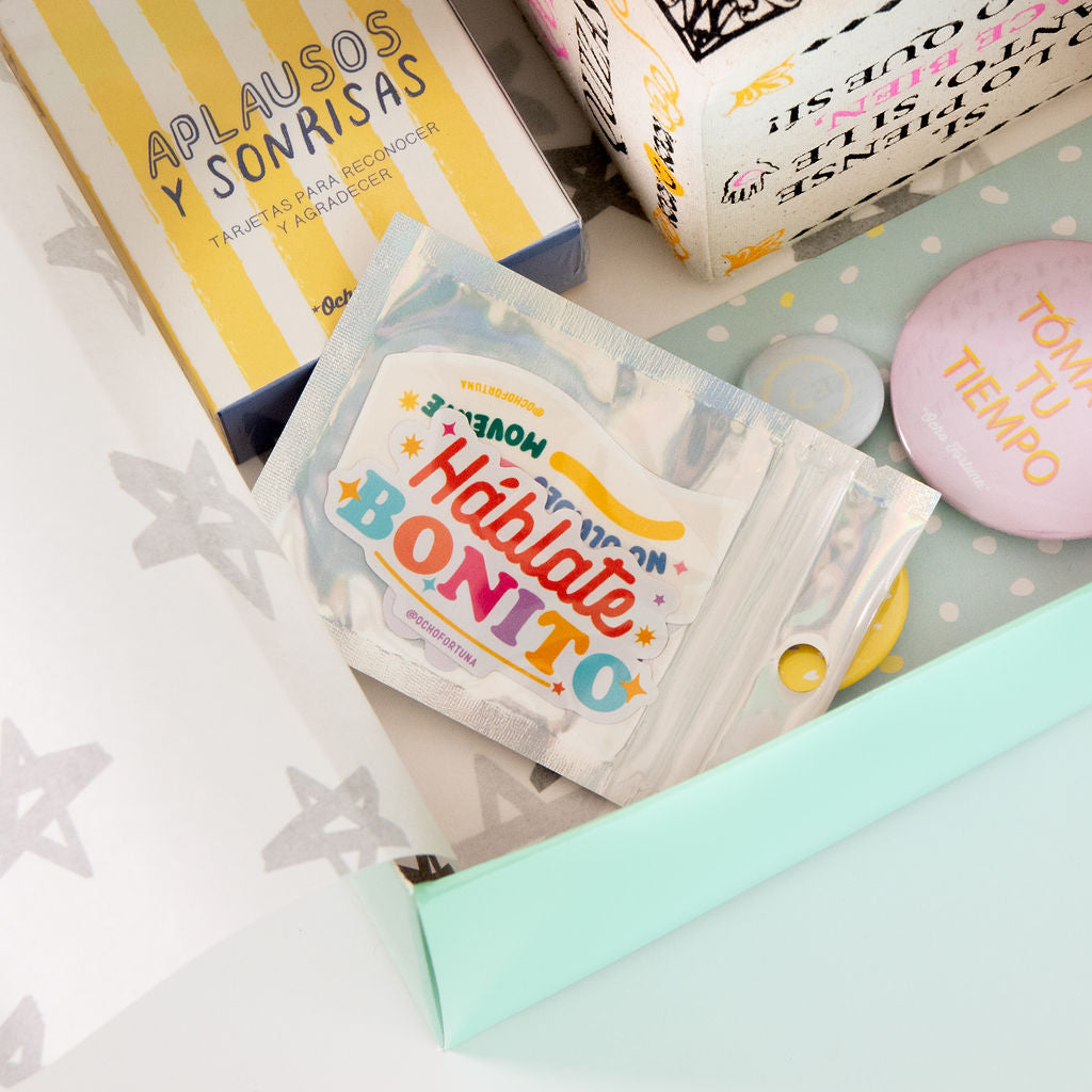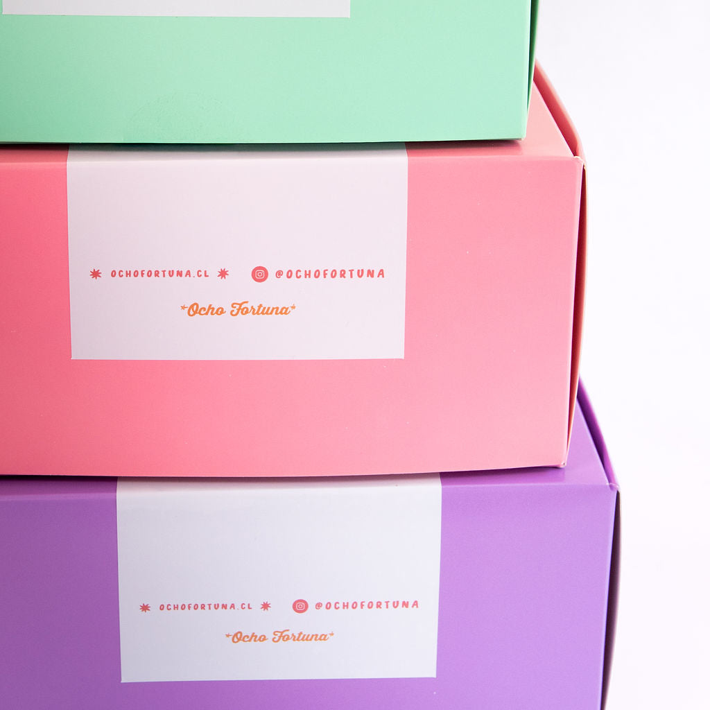 Presentación: Caja con sticker exterior “Amor y Buena Fortuna para ti”.